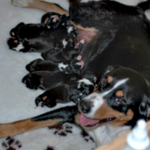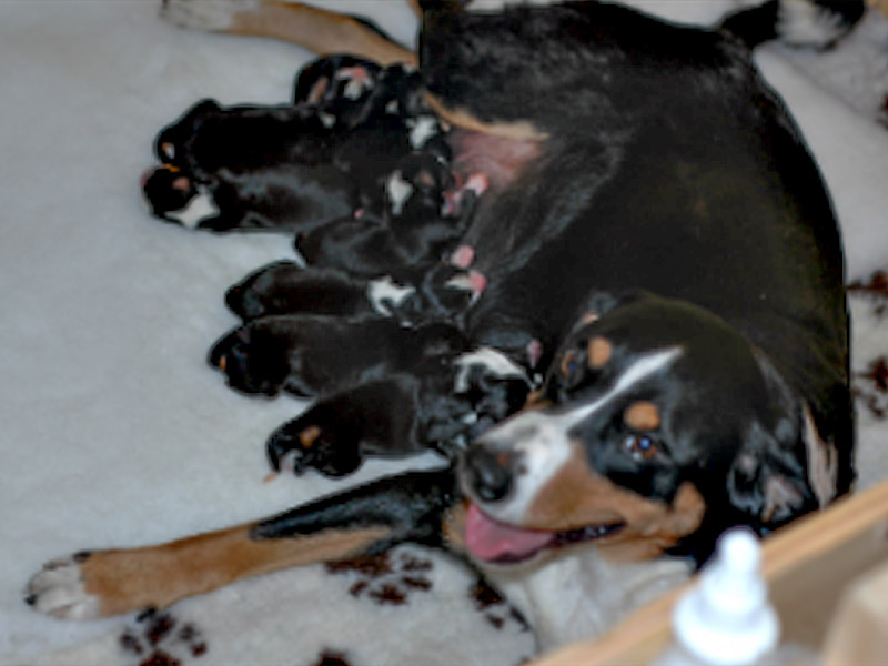 Jetzt freuen wir uns riesig 8 kleine Appenzeller zusammen mit ihrer Mama in der Wurfbox beobachten zu dürfen, und wenn alles gut geht, sie auf ihren weiteren Lebensweg zu begleiten. Nun genug erzählt, die Bilder brauchen keine Worte mehr.